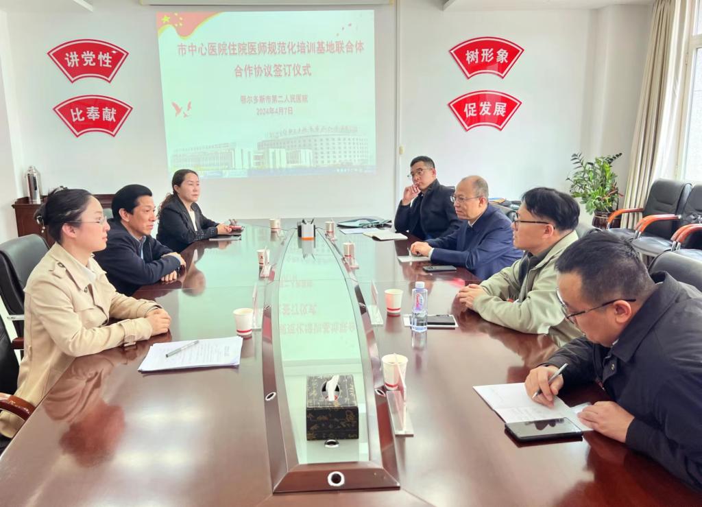 2024年4月7日,市衛(wèi)健委科教科李俊峰科長,市中心醫(yī)院劉喜副院長等一行4人與市第二人民醫(yī)院簽訂住院醫(yī)師規(guī)范化培訓(xùn)基地聯(lián)合體合作協(xié)議,市第二人民醫(yī)院李樹林院長,譚明鈞副院長及醫(yī)院相關(guān)科室負(fù)責(zé)人參加簽訂儀式。