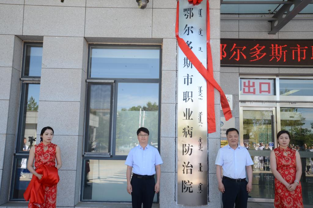 自治區(qū)衛(wèi)生健康委員會職業(yè)健康處處長李雪峰與市衛(wèi)生健康委員會副主任、市疾病預(yù)防控制局局長靳尚武為鄂爾多斯市職業(yè)病防治院揭牌。