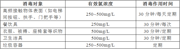各種情況下含氯消毒劑的推薦使用濃度如下↓↓