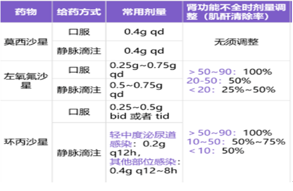 莫西沙星在尿液中濃度低,不建議用于尿路感染。